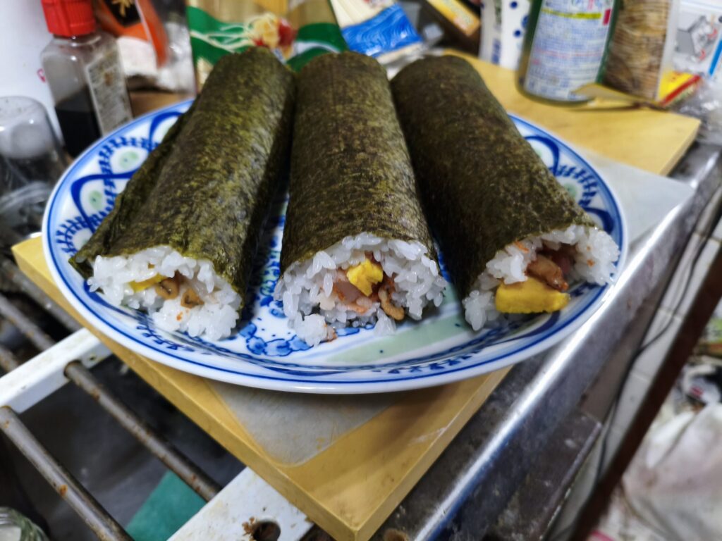 そりゃガチの恵方巻き製造者以上のことが出来るなんて微塵も思ってませんが、如何にも恵方巻きらしい巻物ができたかなぁと思っておりやす。